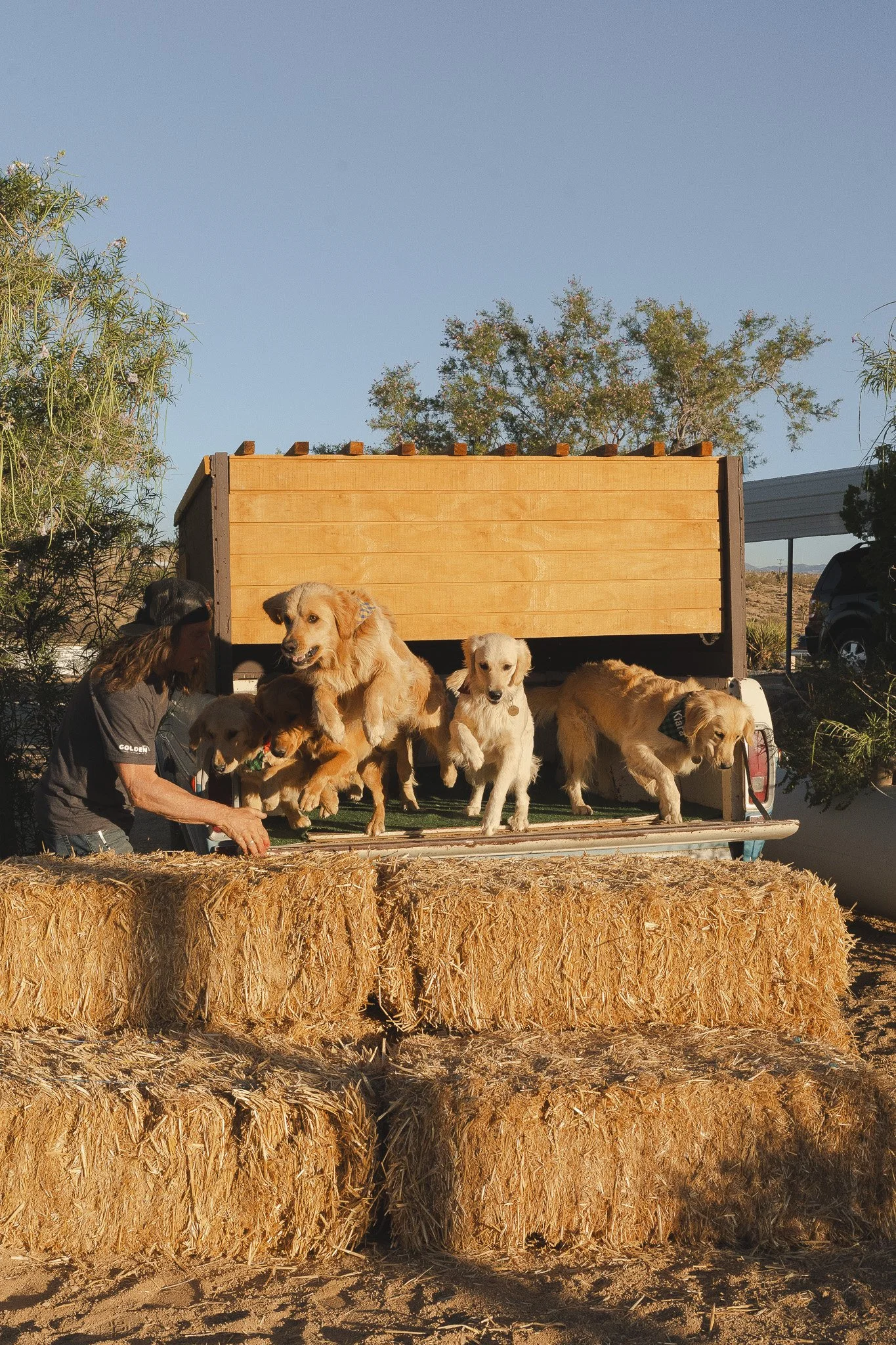 Join a small group of fellow dog lovers for a 90-minute golden retriever experience at our peaceful outdoor space in Joshua Tree. This is our most accessible offering — perfect for a low-key afternoon escape, a cozy solo date, or a fun outing with a friend.